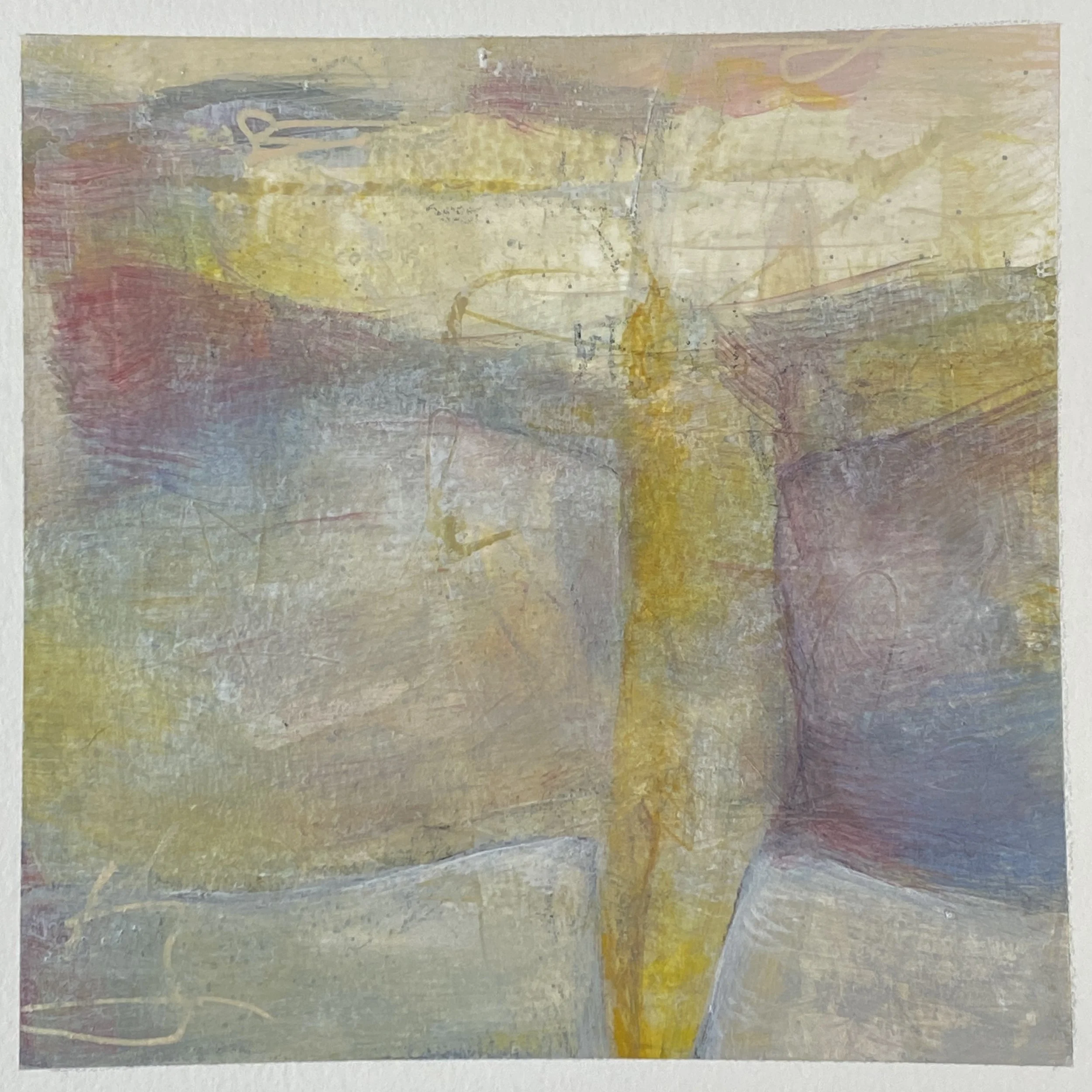 "And Just Then" -- acrylic and mixed media on paper, 6"x6", $120